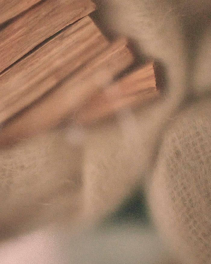 Cashmeran Velvet is a synthetic molecule which mimics the scent of warm, comforting woods with a slightly charred and smoky quality. It’s a note that we’re obsessed with for its ability to feel instantly tactile and evoke the feeling of being wrapped in a huge blanket. We couldn’t wait to use it as the inspiration for a fragrance - we love the look on people’s faces when they smell it for the first time.